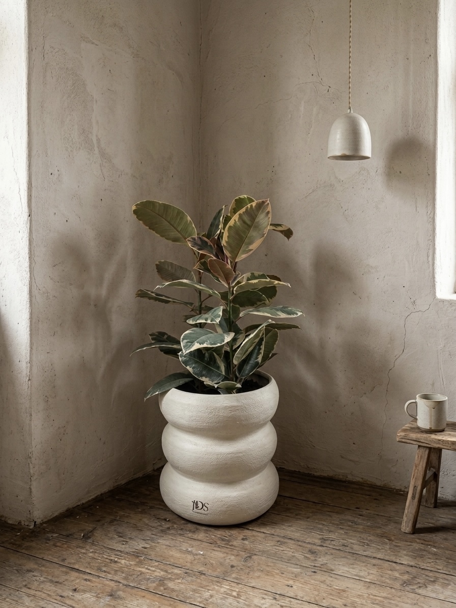 Le Ficus elastica ‘Tineke’ est une plante facile qui ne demande pas beaucoup de lumière et s’adapte bien à une lumière indirecte modérée. Arrose-le modérément quand le sol sèche en surface et évite l’excès d’eau pour garder des feuilles en bonne santé.